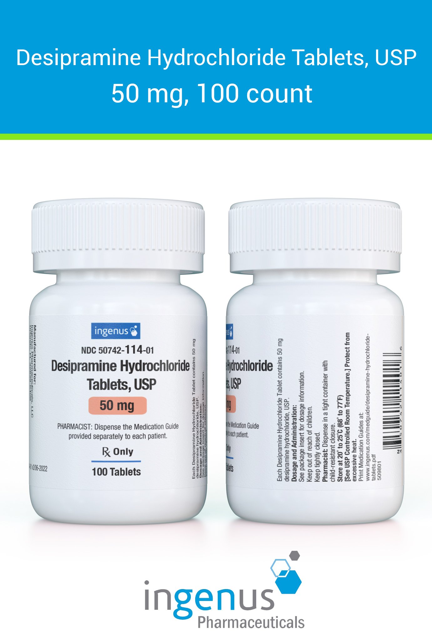 | Norpramin® | 50742-0114-01 | 50 mg | 100 | View | View |