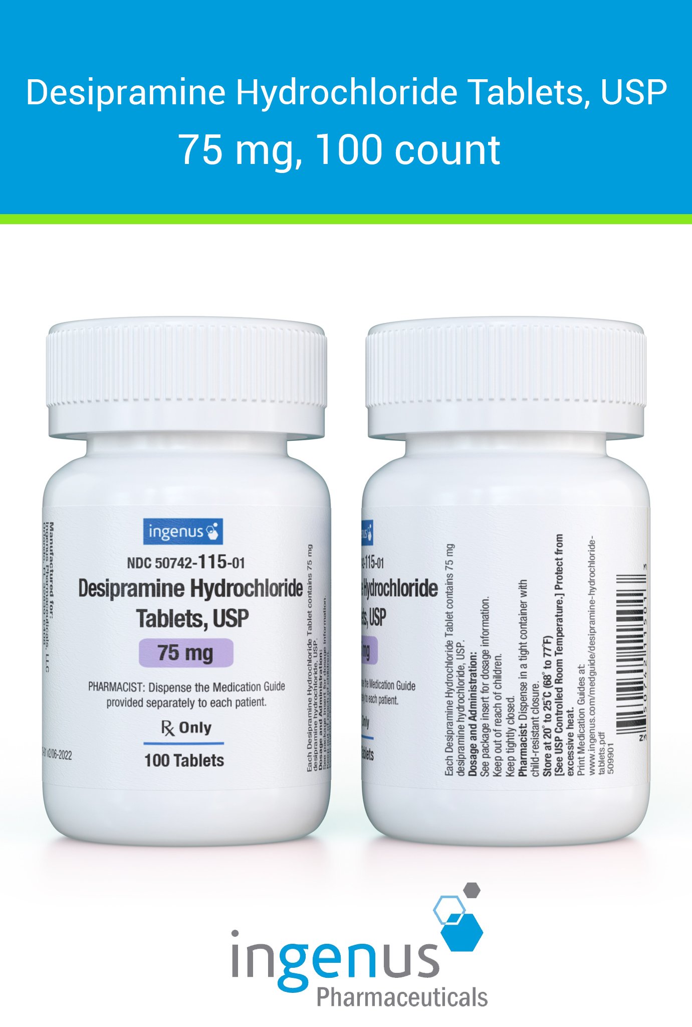 | Norpramin® | 50742-0115-01 | 75 mg | 100 | View | View |