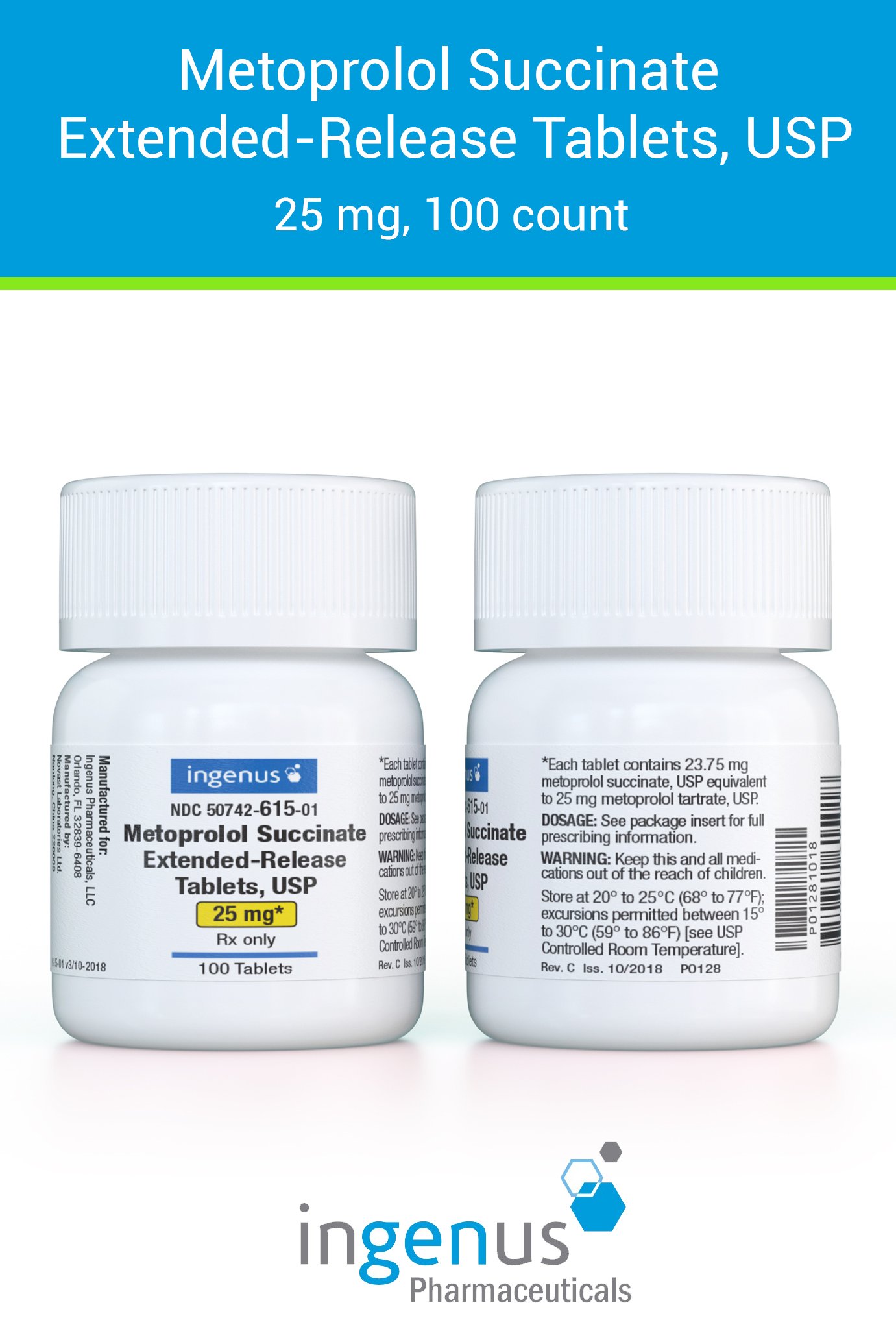 | Toprol XL® | 50742-0615-01 | 25 mg | 100 | View | View |
