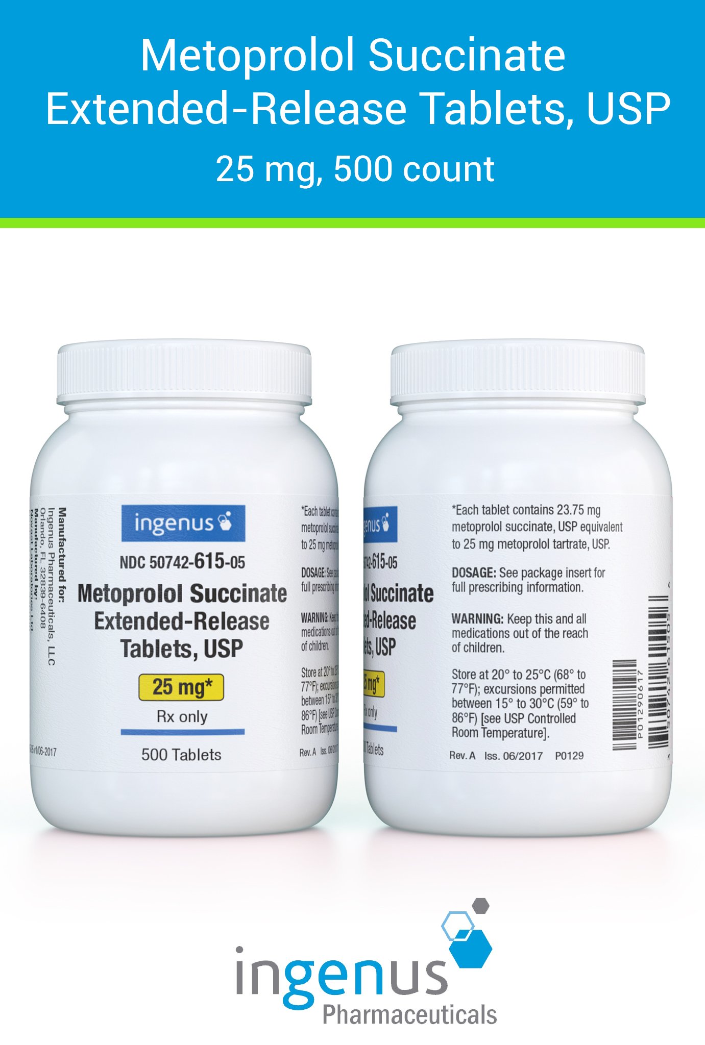 | Toprol XL® | 50742-0615-05 | 25 mg | 500 | View | View |