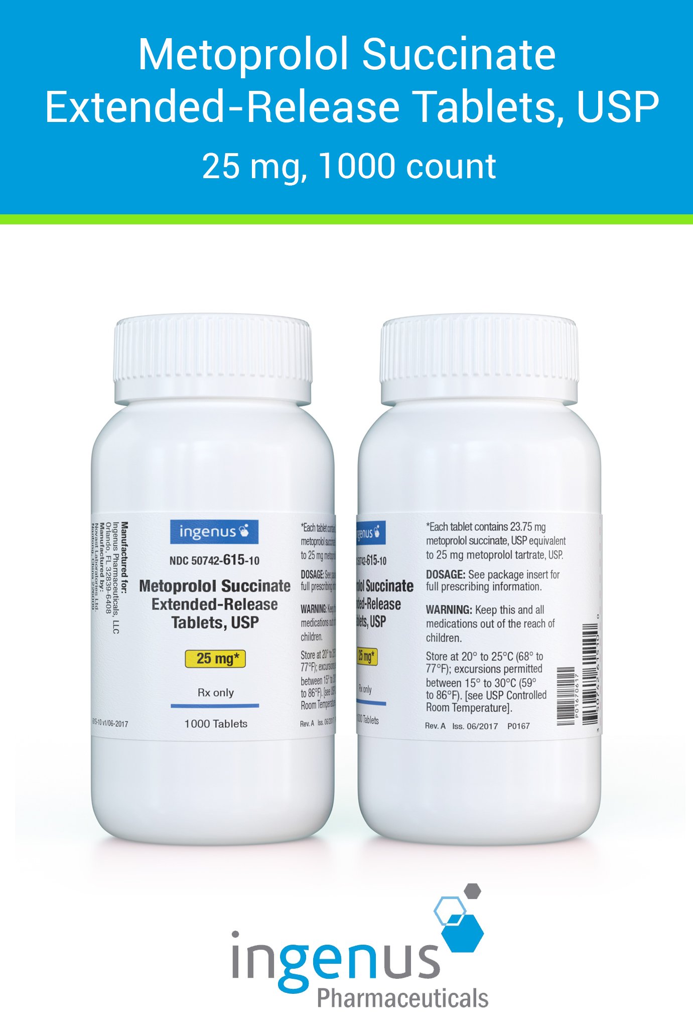 | Toprol XL® | 50742-0615-10 | 25 mg | 1000 | View | View |