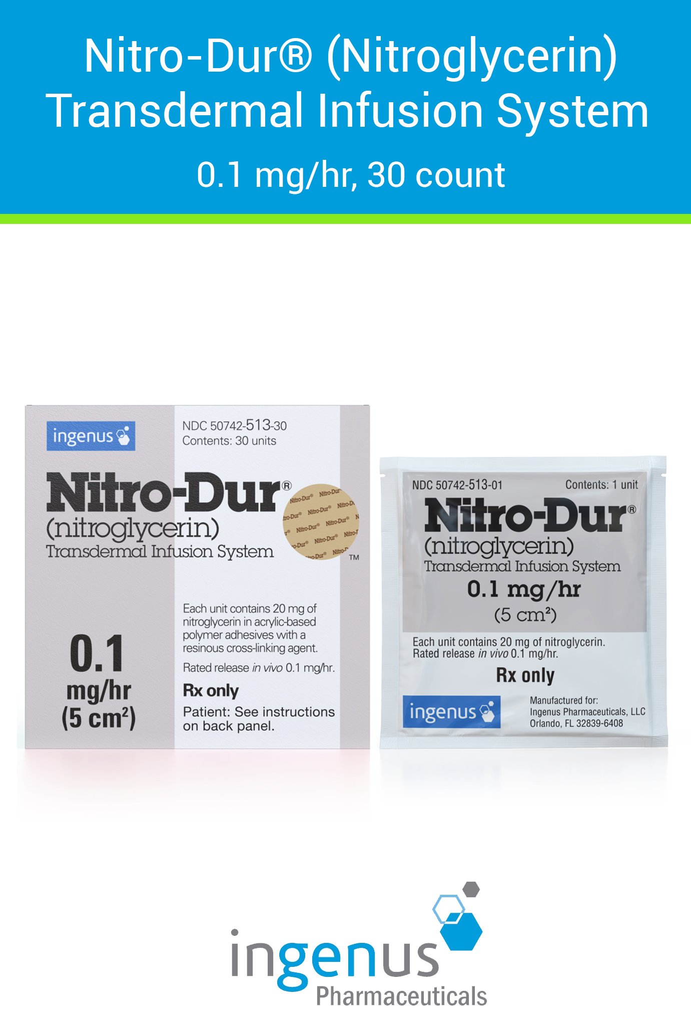 | Nitro-Dur® | 50742-0513-30 | 0.1 mg | 30 | View | View |