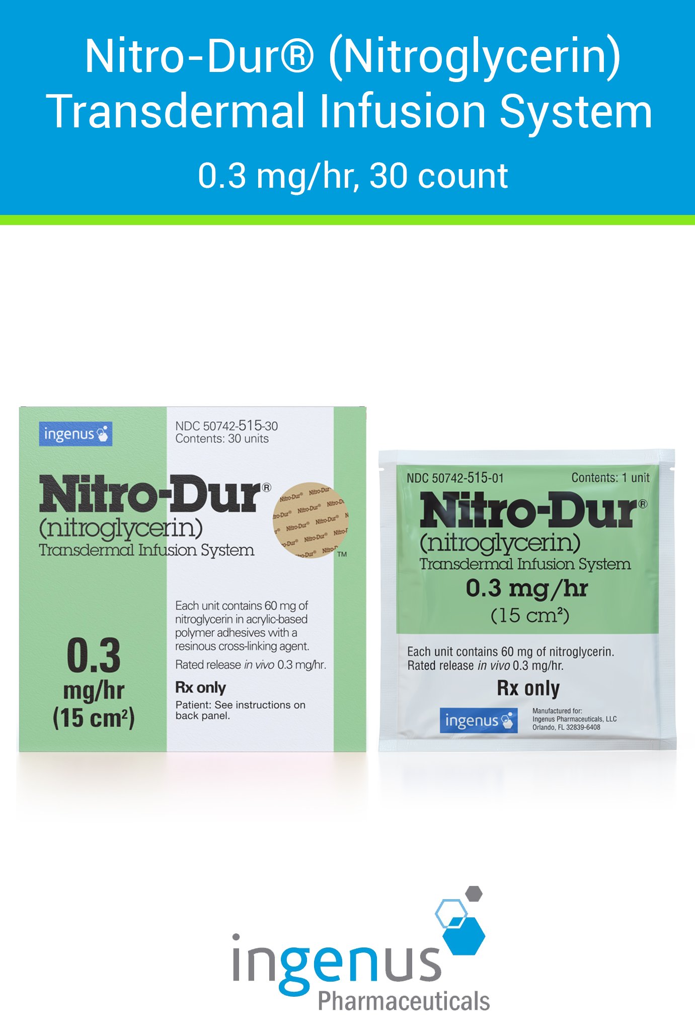 | Nitro-Dur® | 50742-0515-30 | 0.3 mg | 30 | View | View |