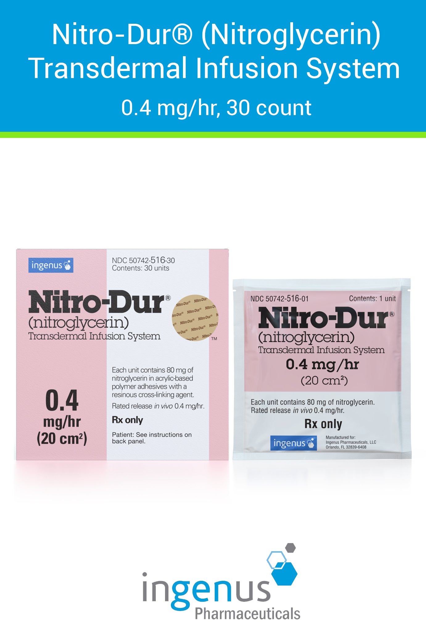 | Nitro-Dur® | 50742-0516-30 | 0.4 mg | 30 | View | View |