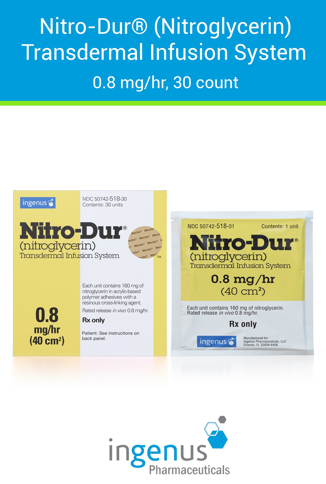 | Nitro-Dur® | 50742-0518-30 | 0.8 mg | 30 | View | View |