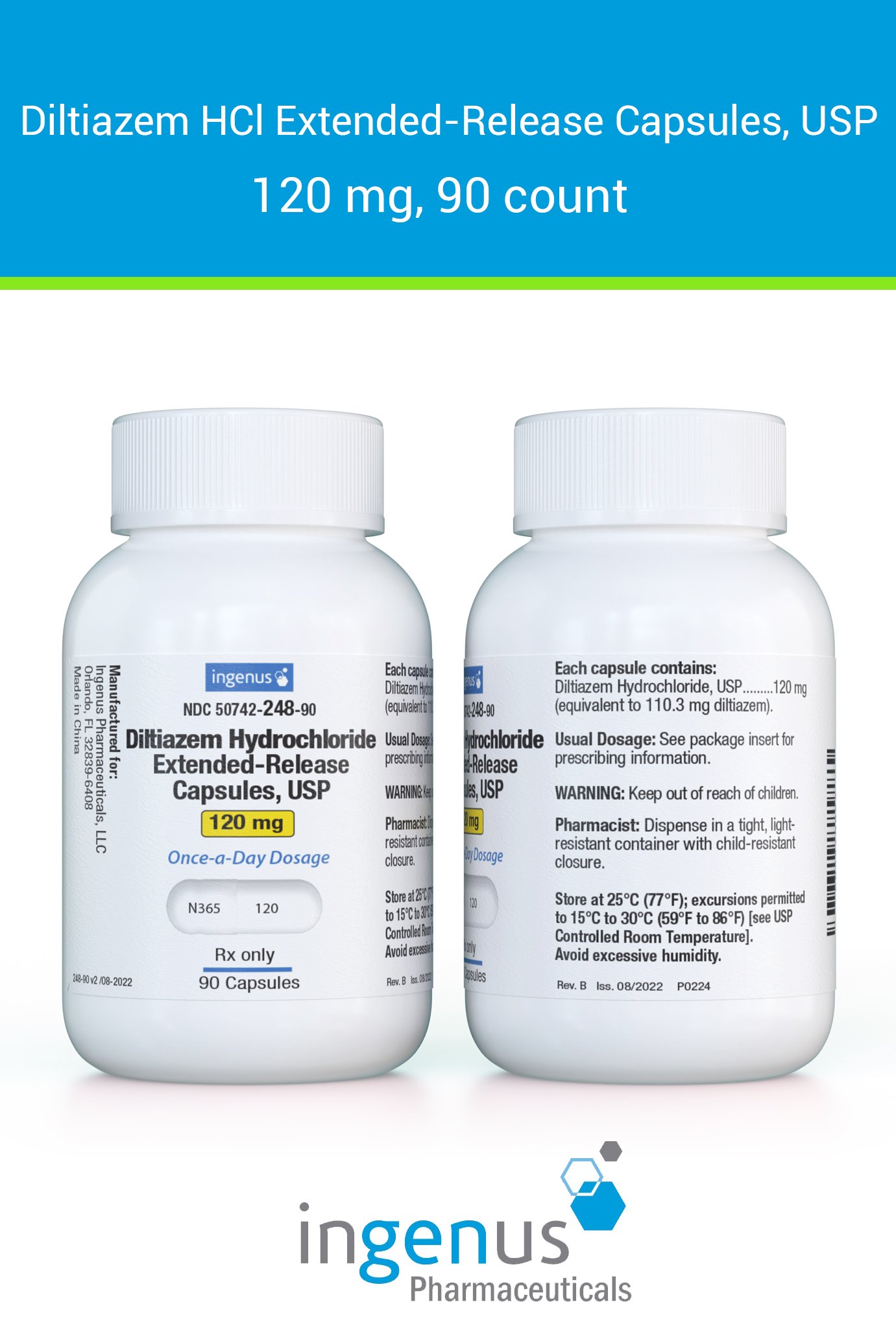 | Cardizem CD® | 50742-0248-90 | 120 mg | 90 | View | View |