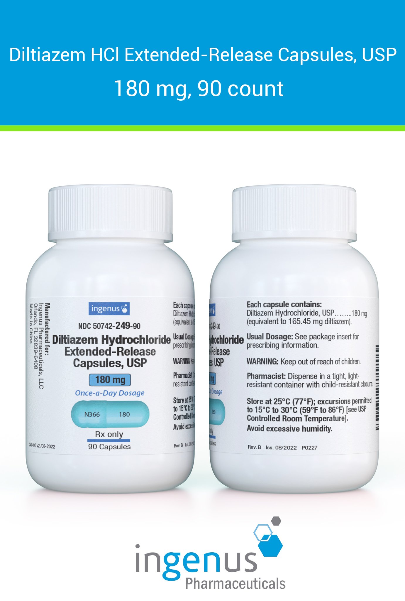 | Cardizem CD® | 50742-0249-90 | 180 mg | 90 | View | View |