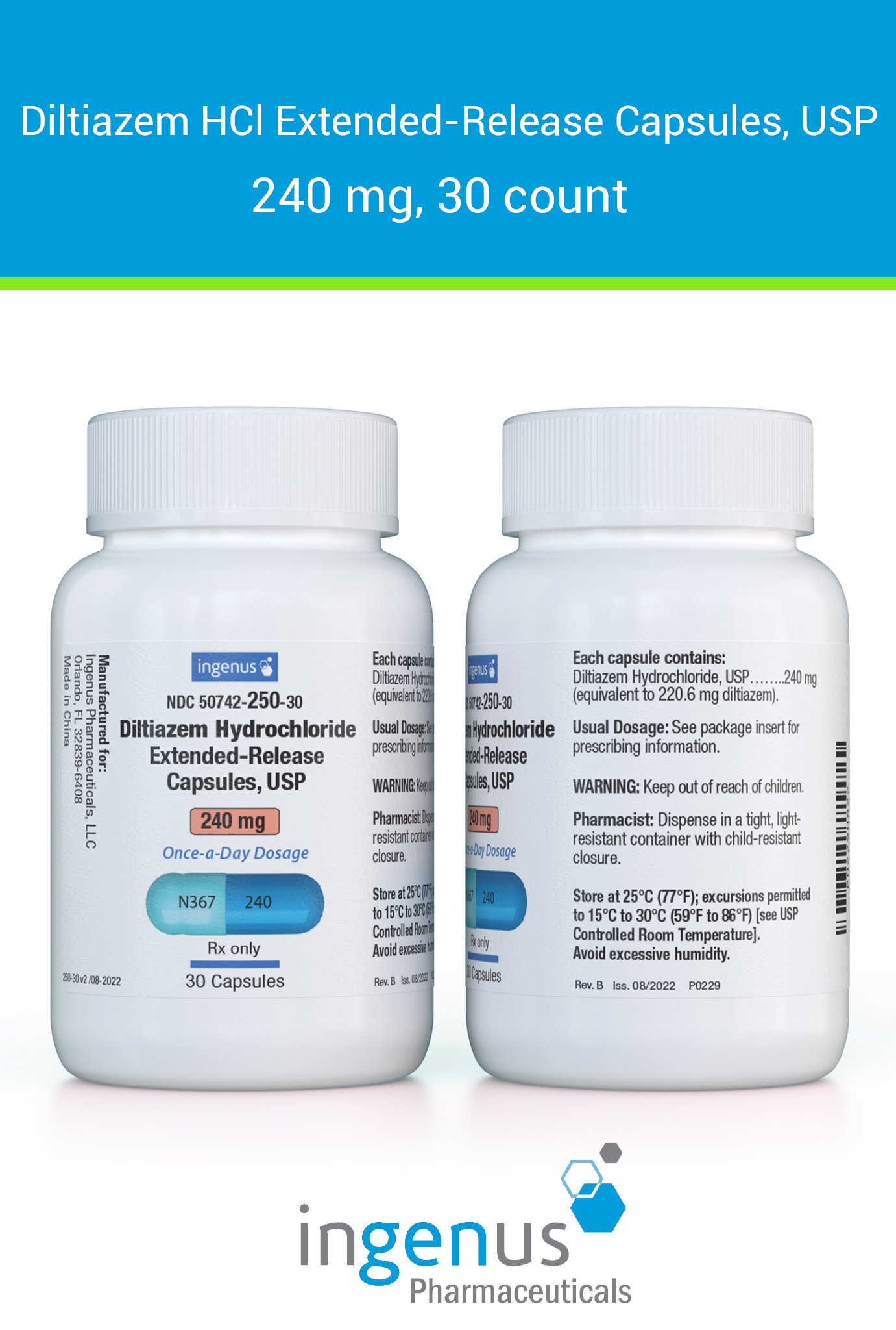 | Cardizem CD® | 50742-0250-30 | 240 mg | 30 | View | View |