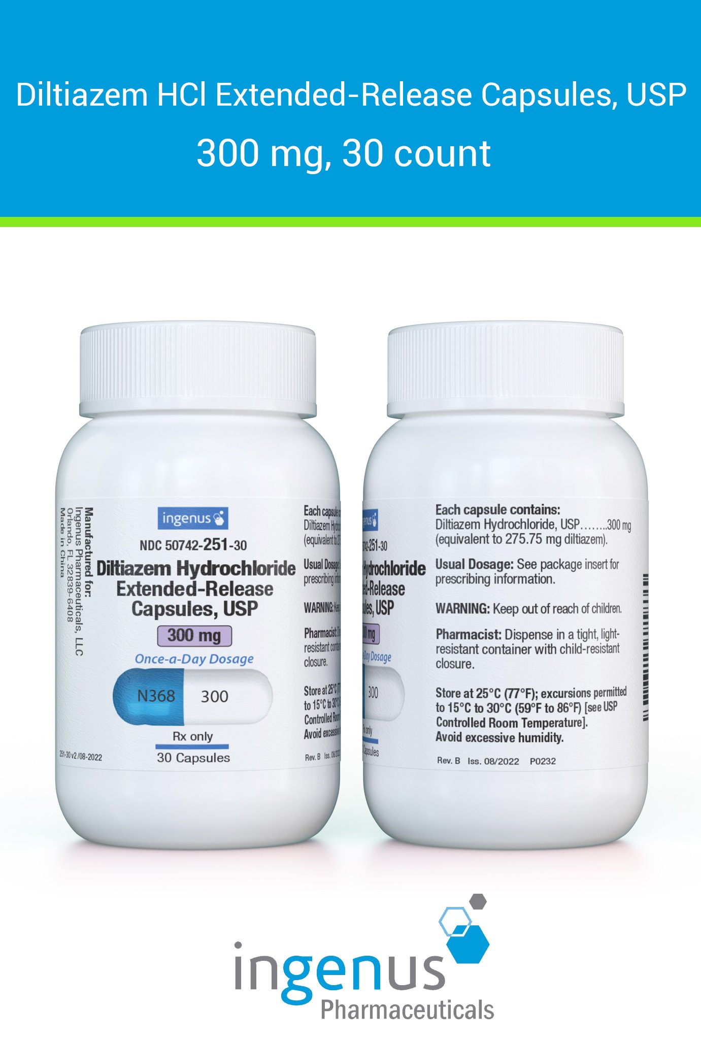 | Cardizem CD® | 50742-0251-30 | 300 mg | 30 | View | View |