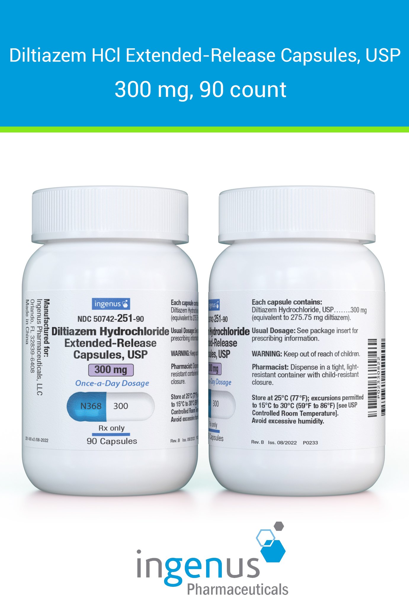 | Cardizem CD® | 50742-0251-90 | 300 mg | 90 | View | View |
