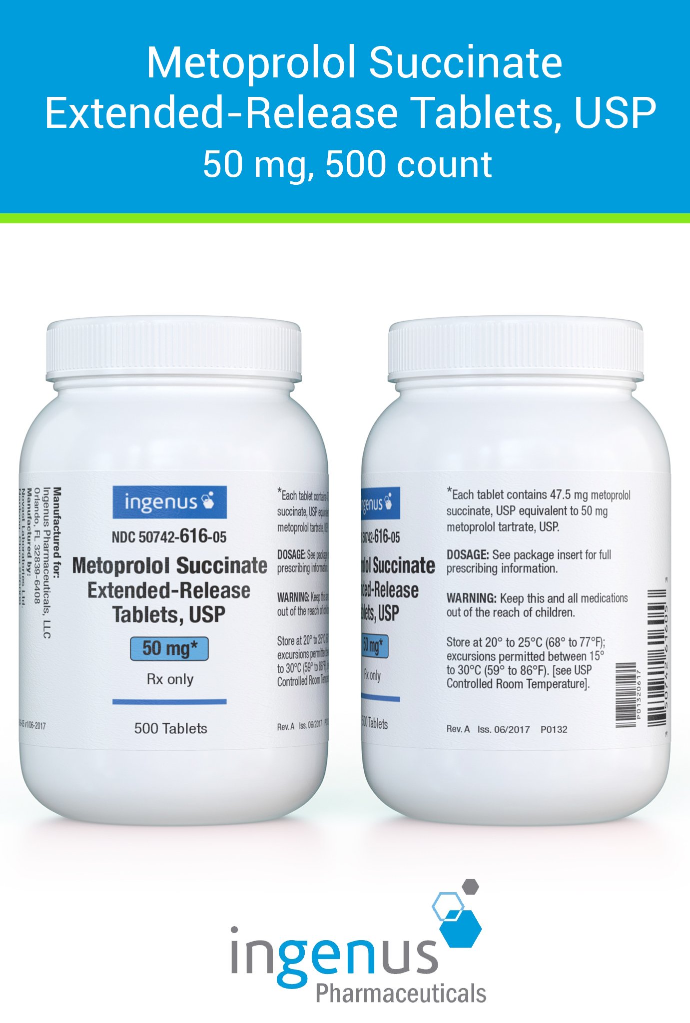 | Toprol XL® | 50742-0616-05 | 50 mg | 500 | View | View |