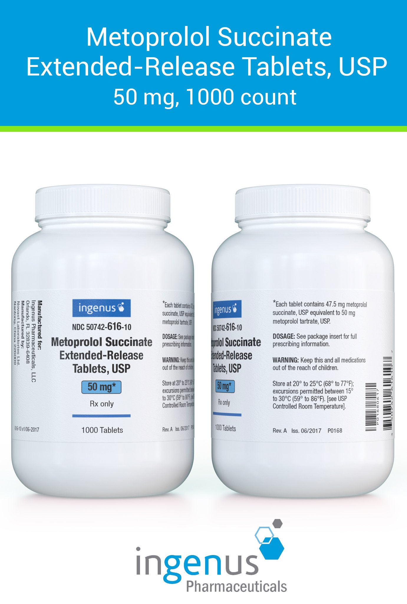 | Toprol XL® | 50742-0616-01 | 50 mg | 100 | View | View |