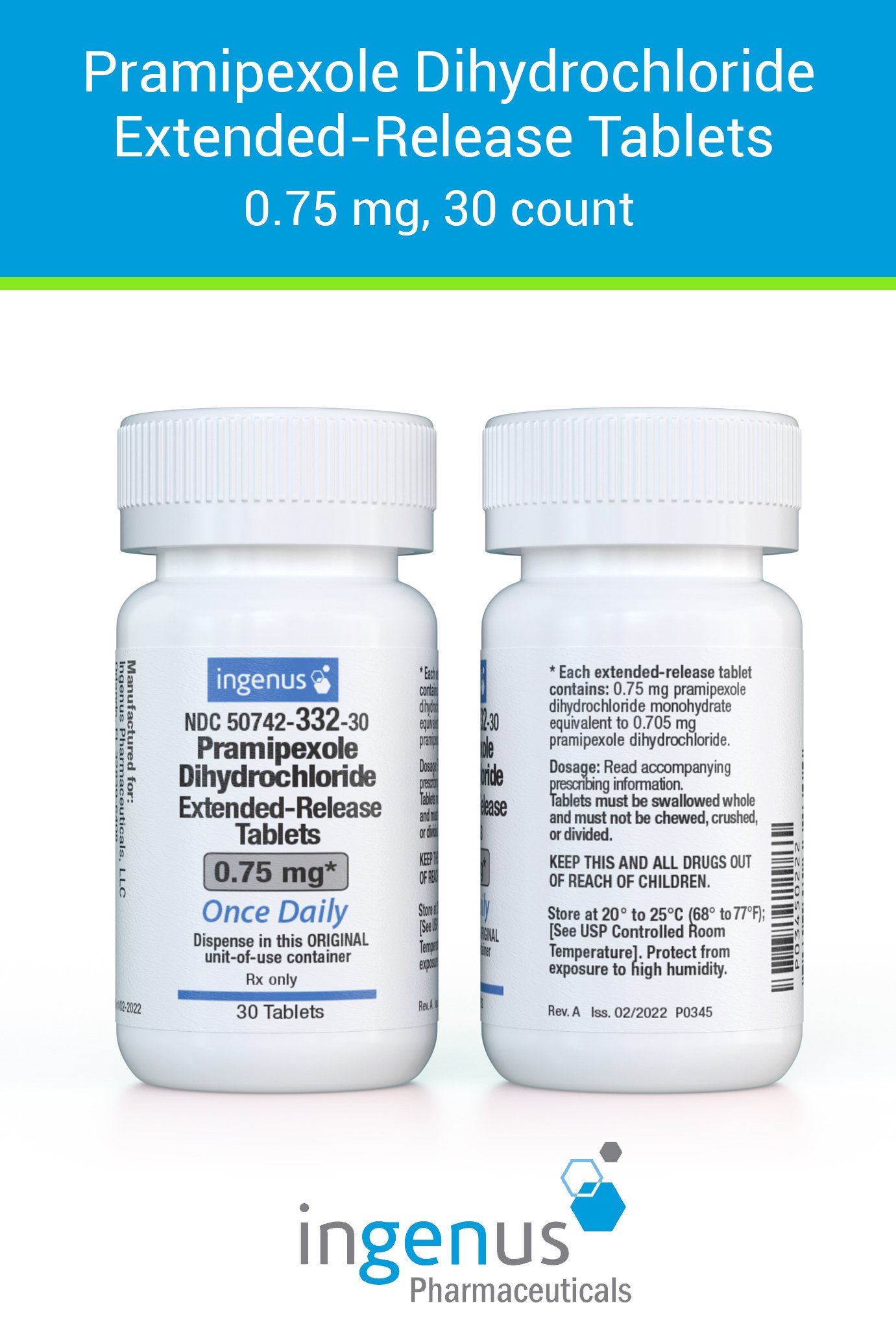 | Mirapex ER® | 50742-0332-30 | 0.75 mg | 30 | View | View |