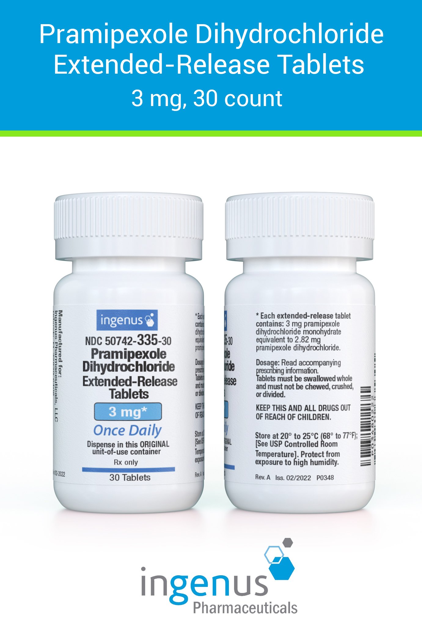 | Mirapex ER® | 50742-0335-30 | 3 mg | 30 | View | View |
