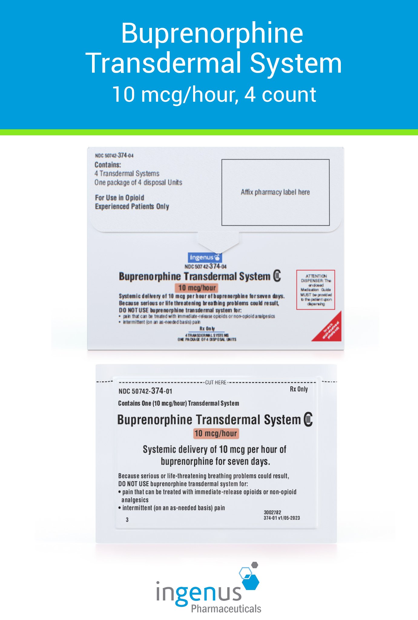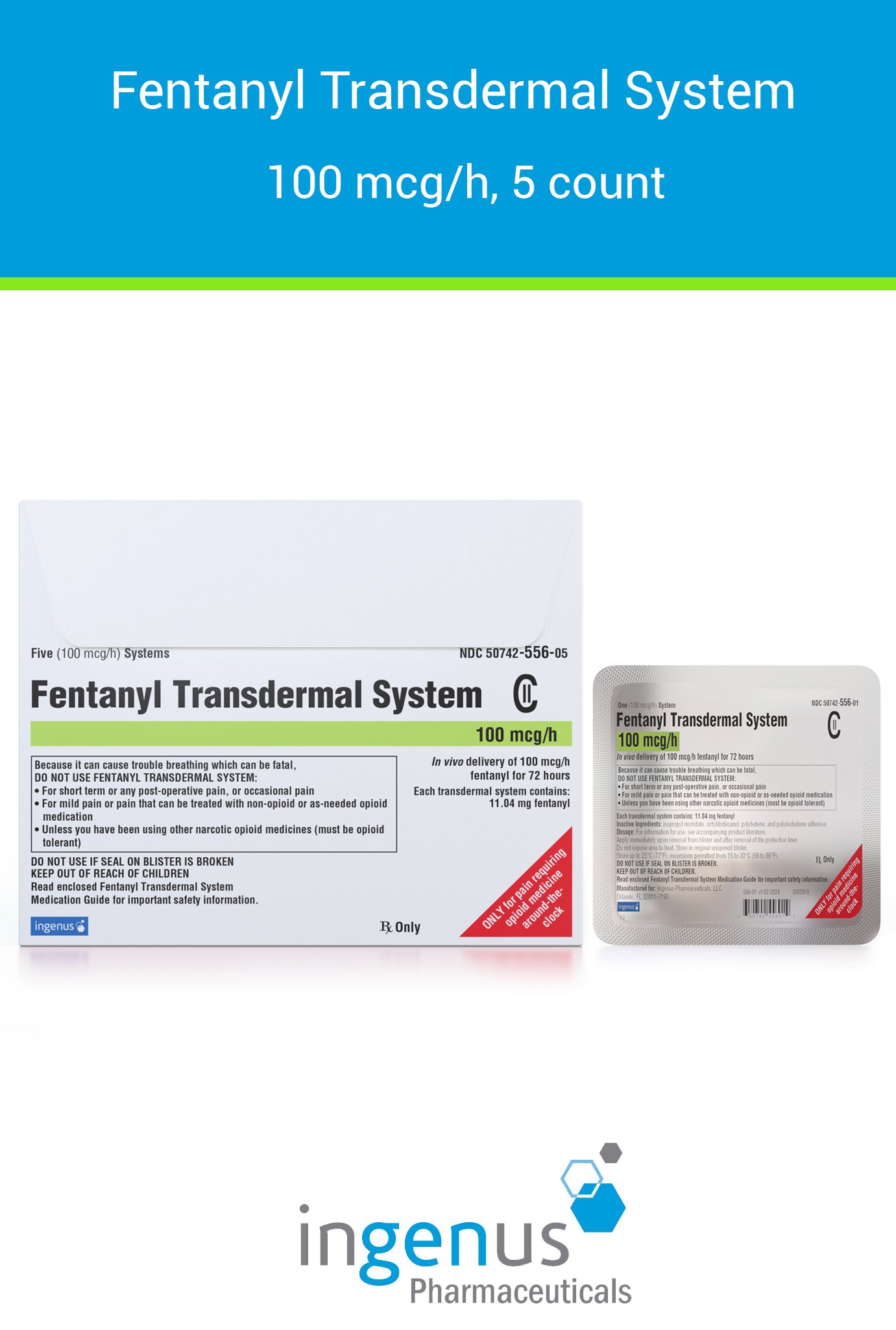 | Duragesic® | 50742-0556-05 | 100 mcg/hr | 5 | View | View |
