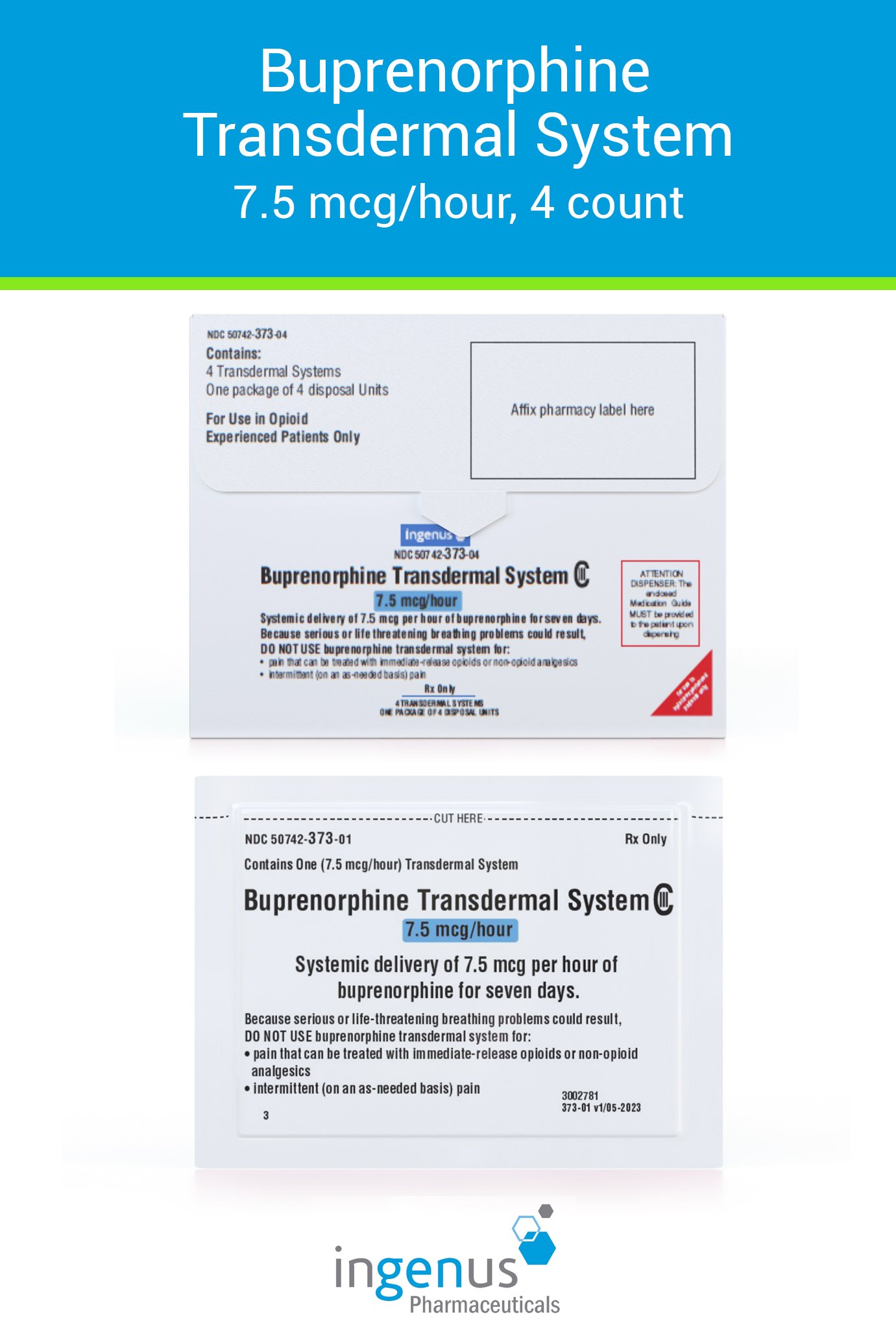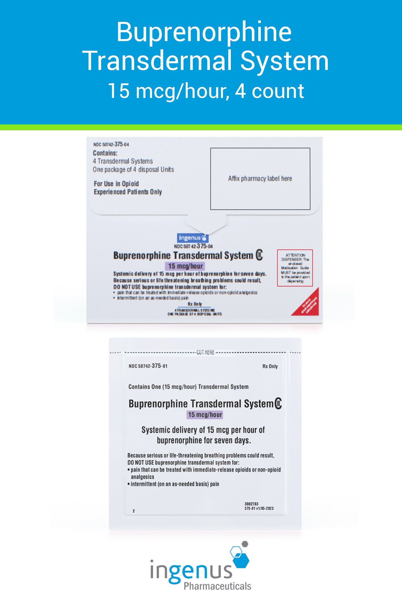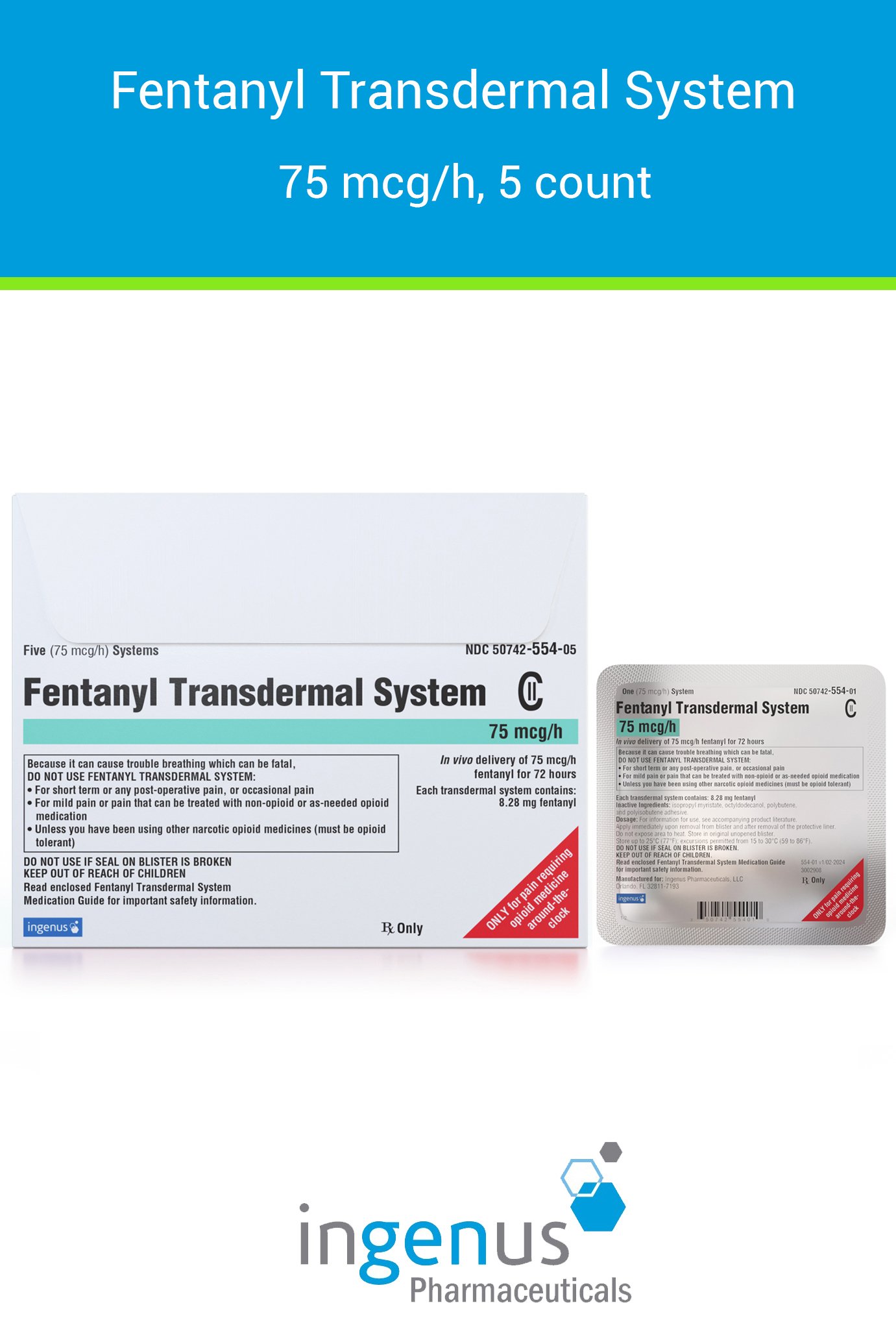 | Duragesic® | 50742-0554-05 | 75 mcg/hr | 5 | View | View |
