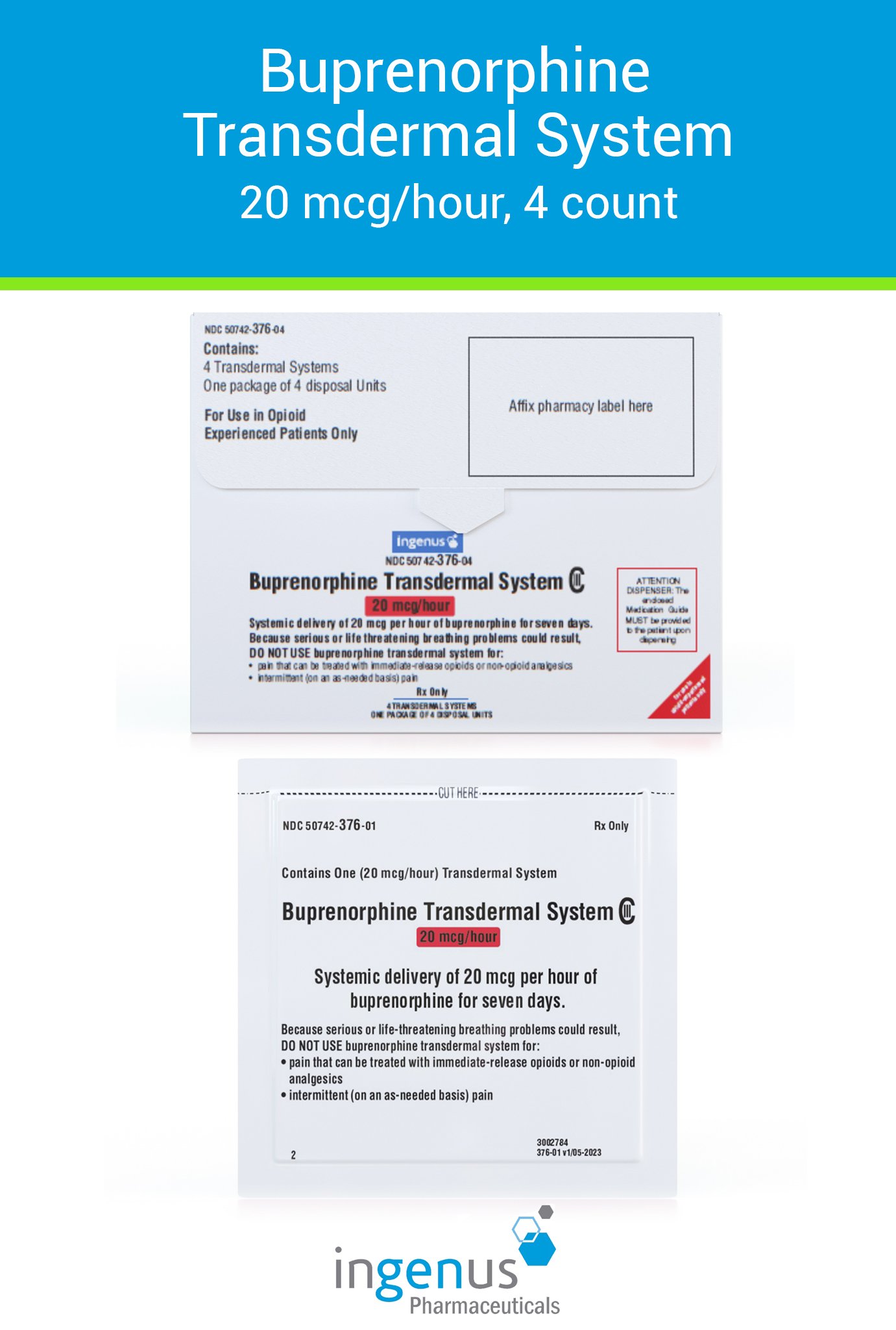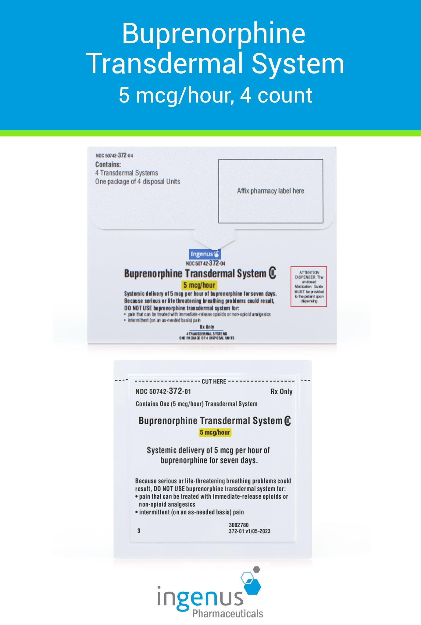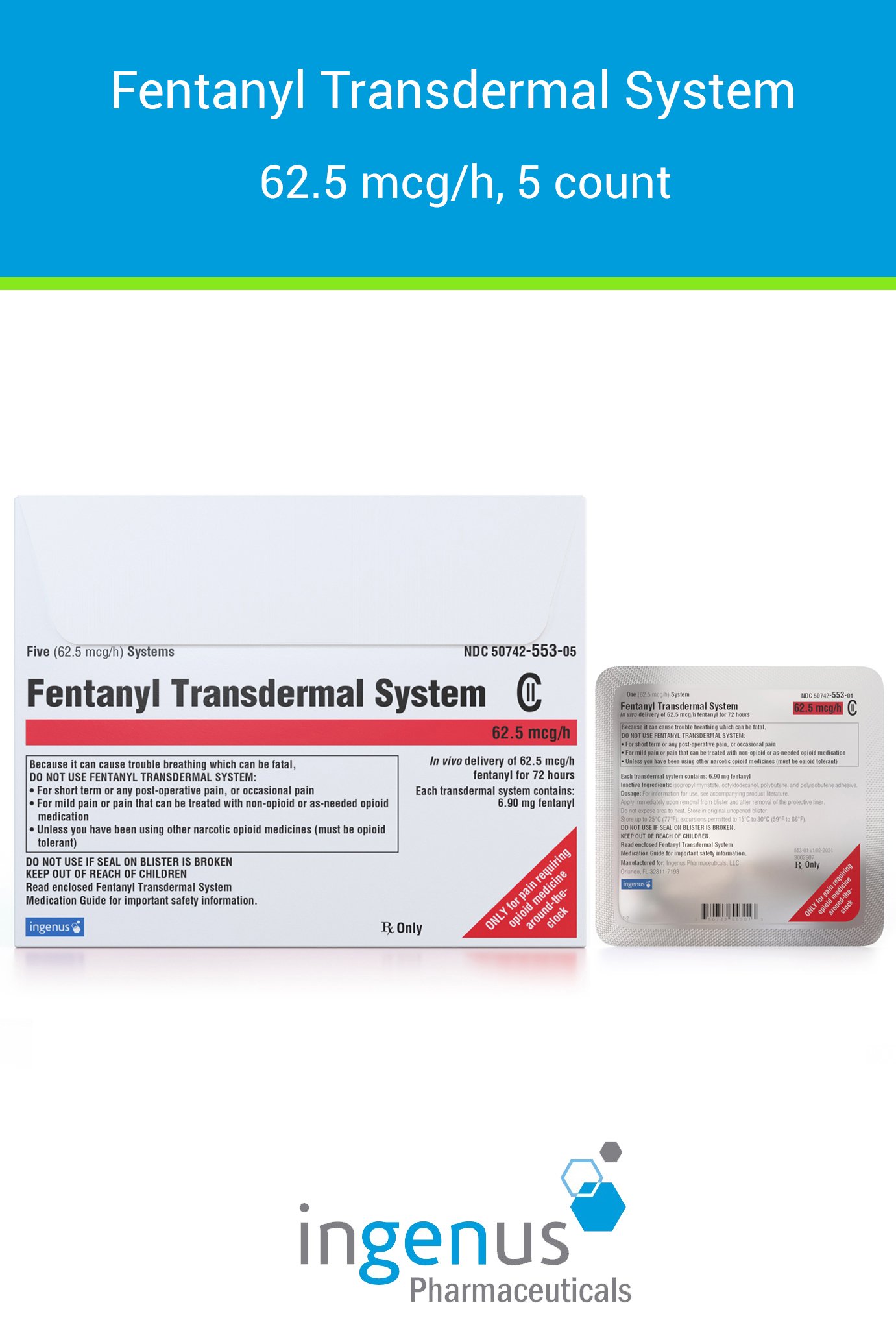 | Duragesic® | 50742-0552-05 | 50 mcg/hr | 5 | View | View |