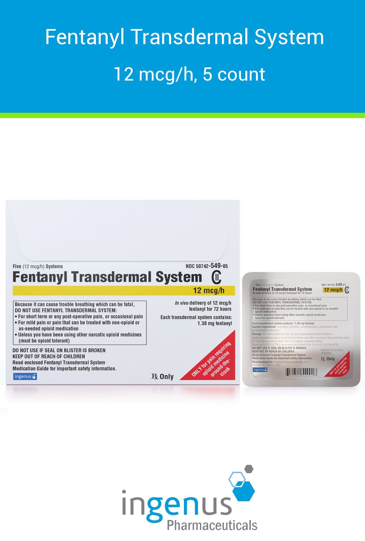 | Duragesic® | 50742-0549-05 | 12 mcg/hr | 5 | View | View |